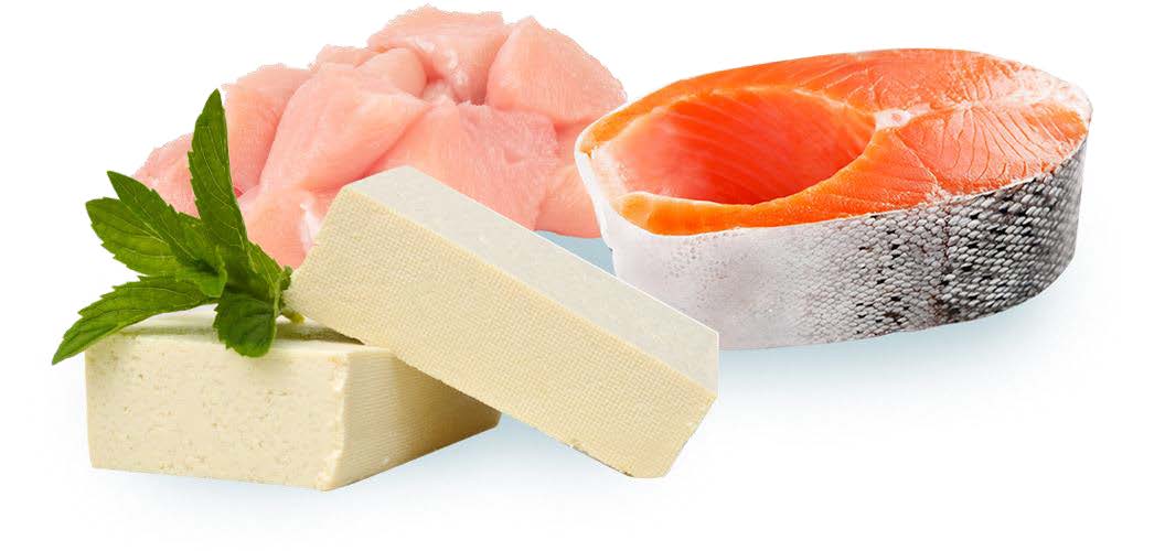 Protein sources include dairy products such milk, yoghurt, and cheese as well as poultry, red meat, fish, seafood, eggs, and poultry. Additionally, soy milk, tofu, tempeh, nuts, beans, and legumes are good sources of plant-based protein.