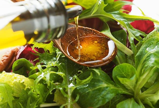- Olive oil is a plant-based fat, making it a healthier alternative to animal-based fats when attempting to reduce "bad" cholesterol. For a salad dressing, it works well combined with red wine vinegar, a minced clove of garlic, and a little ground pepper. Try braising vegetables like leeks or carrots for something new. Simply spread 3 tablespoons of oil over the vegetables in a small baking dish, top with fresh herbs, cover with foil, and bake for about 45 minutes at 375 degree