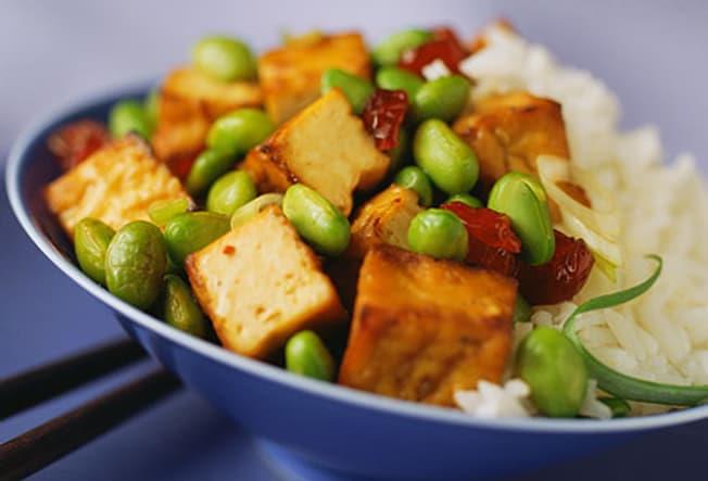 - Foods strong in protein like edamame, soy milk, and tofu can lower your cholesterol by 5–6% with just 25 grammes consumed daily. Eat edamame as a snack, add soy milk to your bowl of cereal, or replace the meat in your stir-fries with tofu.